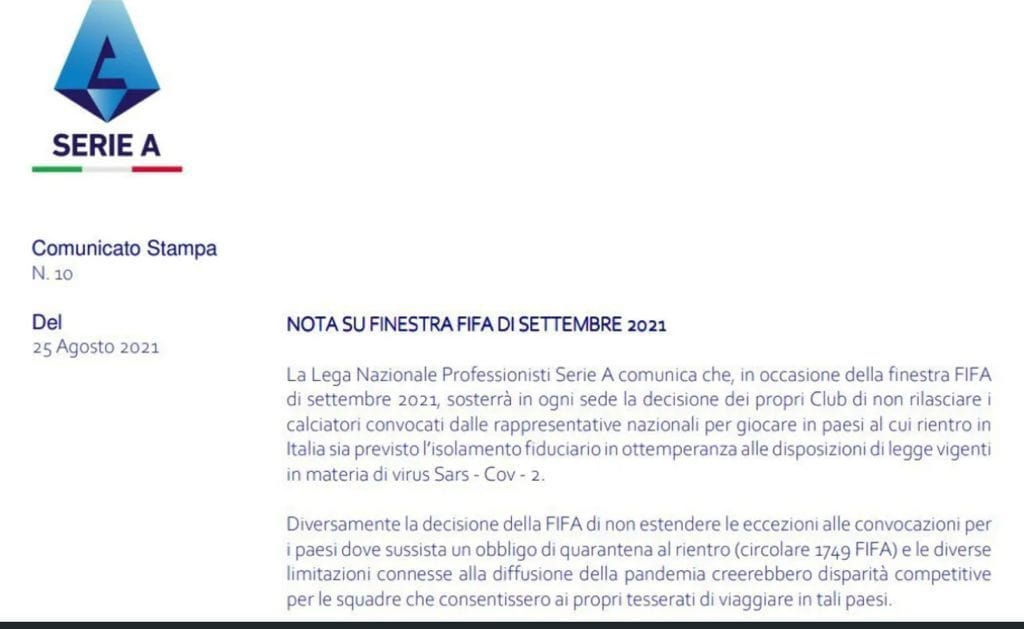 El futbol regional está convulsionado con la negativa de varias ligas europeas al no ceder los jugadores convocados a la triple fecha de las eliminatorias sudamericanas en setiembre, la Premiere League de Inglaterra tiró la primera piedra, lo siguió la La Liga española y la Serie A italiana y la Liga francesa también se pronunciaron aunque esta última está dispuesta a ceder los jugadores pero se mantiene critica con la FIFA, por último se sumó La primera Liga de Portugal, negando también a los jugadores.