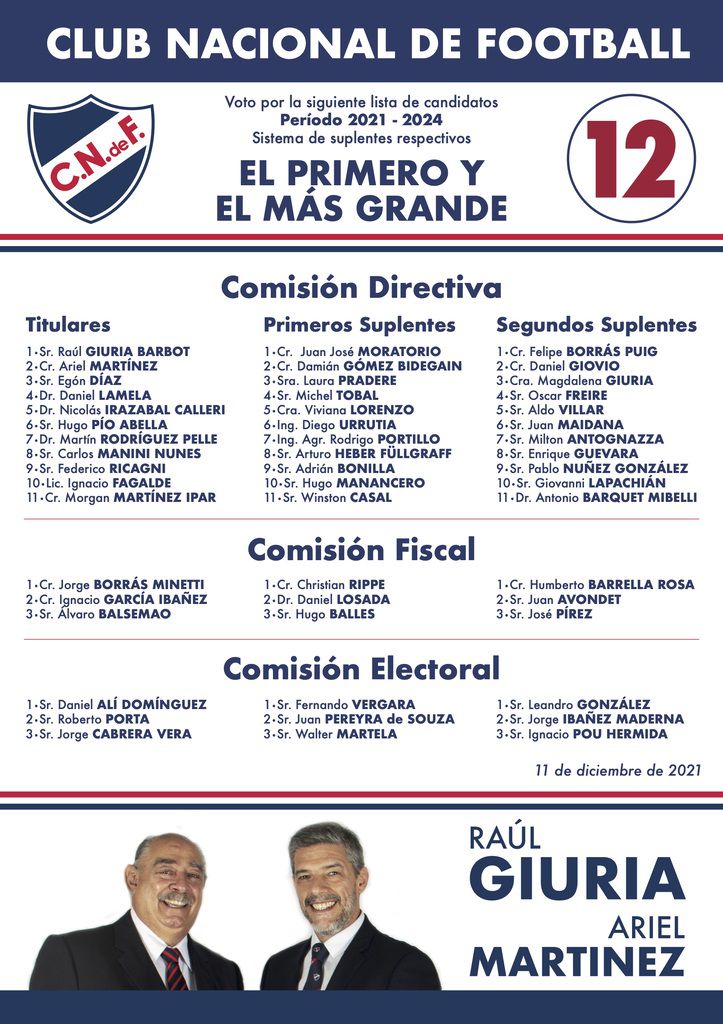 Por último, Raúl Giuria vuelve a presentarse y lidera la lista 12, tendrá como candidato a vice a Ariel Martínez, que es el actual presidente de la Comisión de Básquetbol.